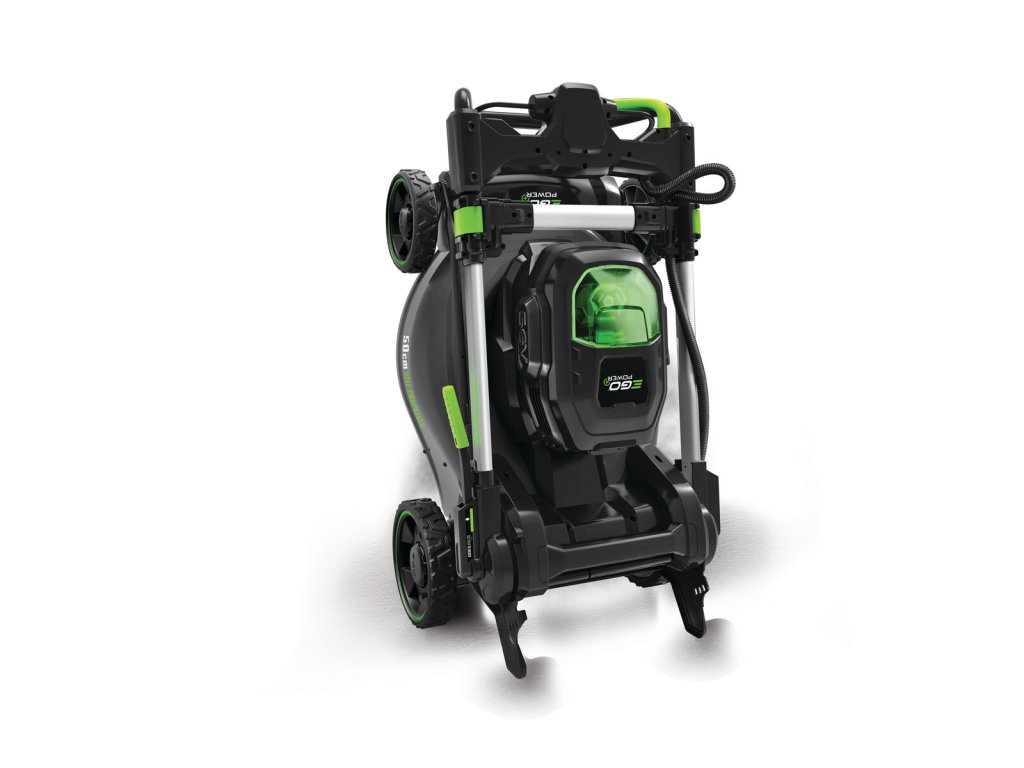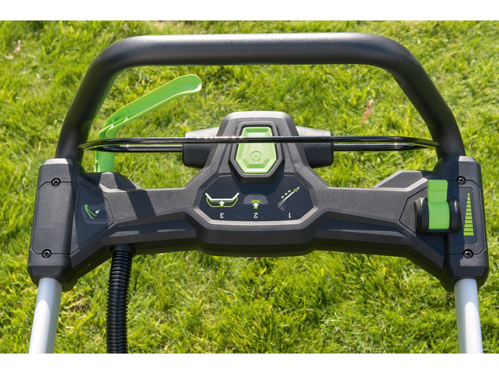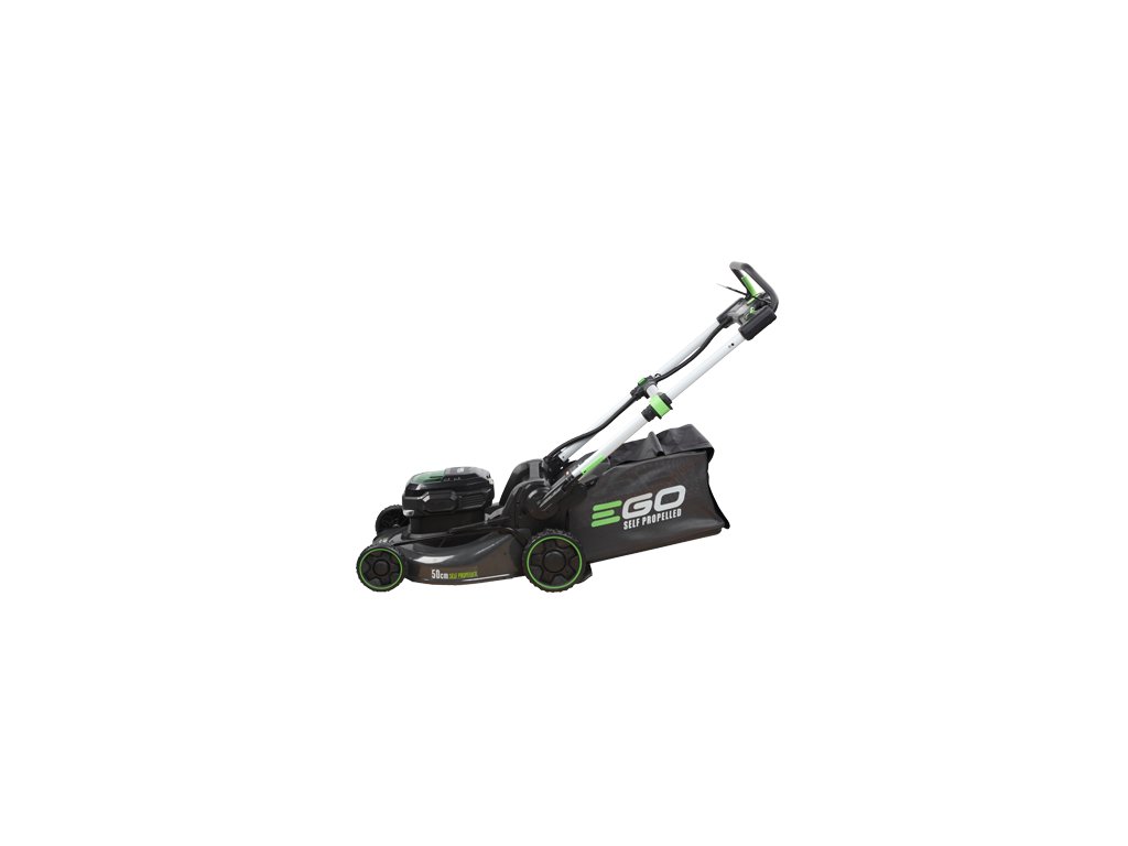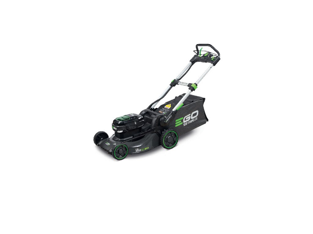 Model EGO LM 2020E-SP - záběr sečení 50cm, ocelový podvozek a plynule proměnlivý pojezd, objem sběrného koše 60L, teleskopická a výškově nastavitelná komfortní rukojeť.