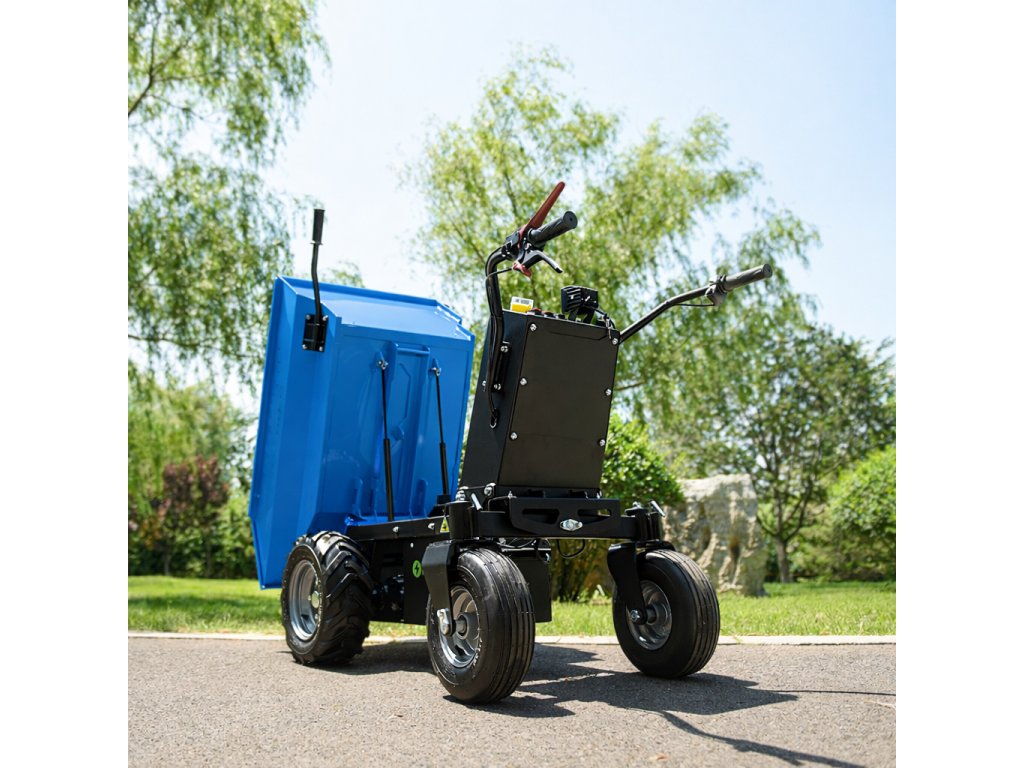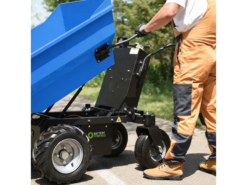 Kolový elektrický přepravník, dumper Digger D550 MŠ E s šikmou korbou je vybaven mechanickým sklápěním korby. Umožní Vám pohodlnou přepravu sypkých i pevných materiálu a to až do hmotnost 500 kg. Poradí si i s velmi špatně přístupnými místy.
