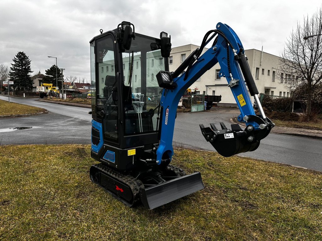 Široká škála příslušenství: K minibagru je k dispozici bohaté příslušenství, včetně lžic různých šířek (20, 40, 60, 80 cm), půdních vrtáků (20, 30 cm), bouracího kladiva, rýpacího trnu, kleští a rychloupínáku, což zvyšuje jeho univerzálnost.