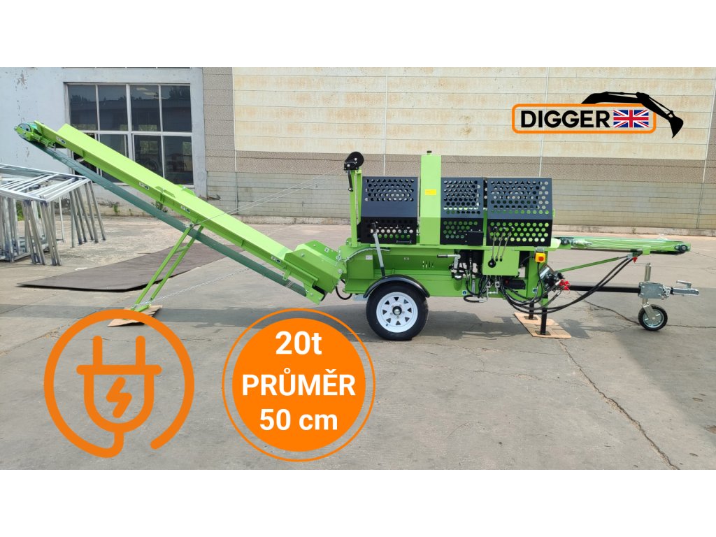 Štípací automat Digger AWS-50 FH E, automatický štípač dřeva, linka na dřevo s dopravníkem, pásem, automatická linka, poloautomat na dřevo