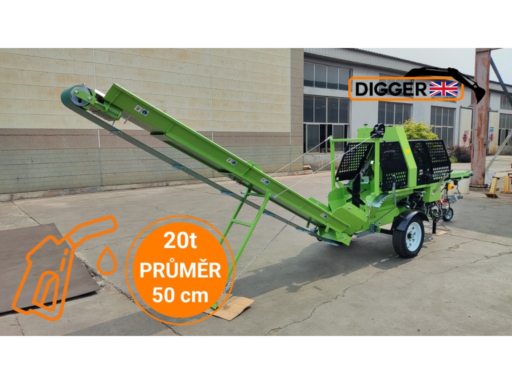 Štípací automat Digger AWS-50 FH G, automatický štípač dřeva, linka na dřevo s dopravníkem, pásem, automatická linka, poloautomat na dřevo